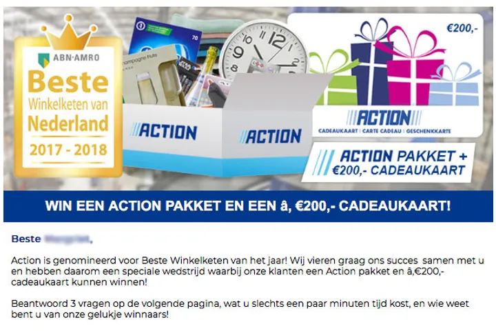 Frauduleuze winactie namens Action: ‘Mis deze exclusieve Action Cadeaukaart niet’