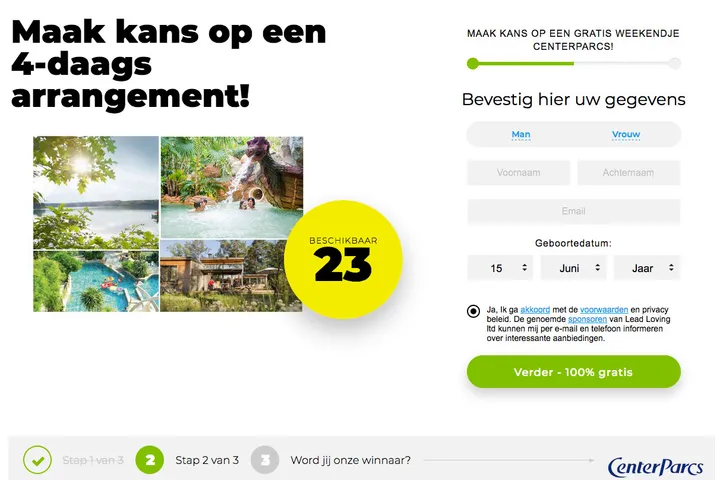 Mail over gewonnen weekend 'Center Parcs' is misleiding