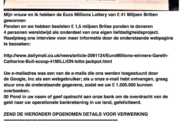 Anderhalf miljoen pond cadeau? Trap er niet in!