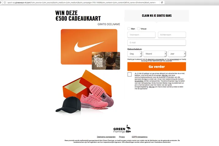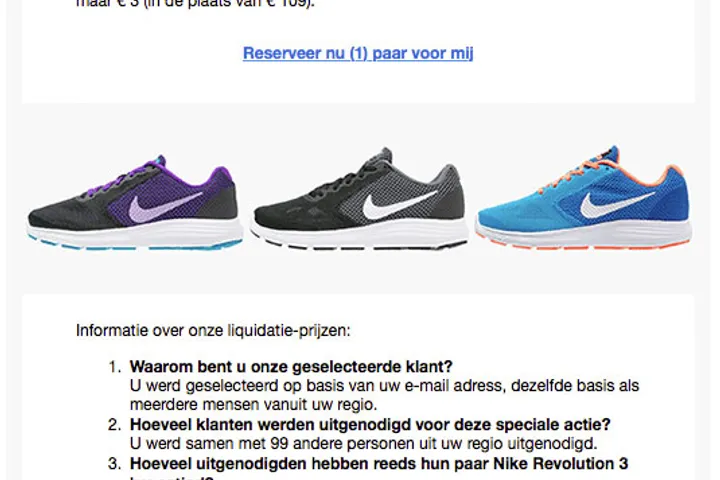 E-mail 'Nike Revolution voor €3,-' leidt naar misleidende website