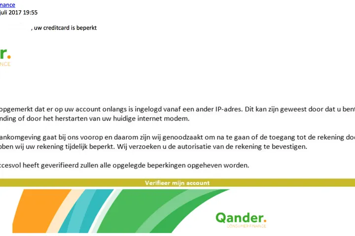 Valse e-mails creditcardmaatschappij Qander in omloop