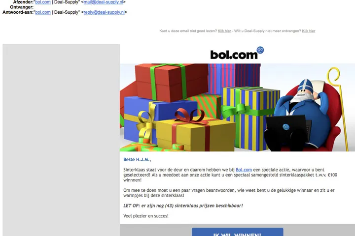 Valse winactie 'Bol.com': 'Win een sinterklaaspakket!'