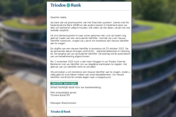 Wees gewaarschuwd voor valse mail namens Triodos Bank over verouderde identifier