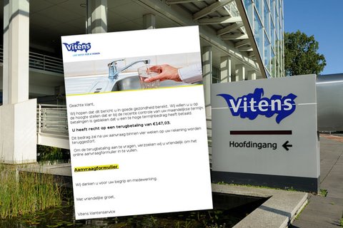 Pas op voor nepmail van Vitens over teruggave van 147,03 euro