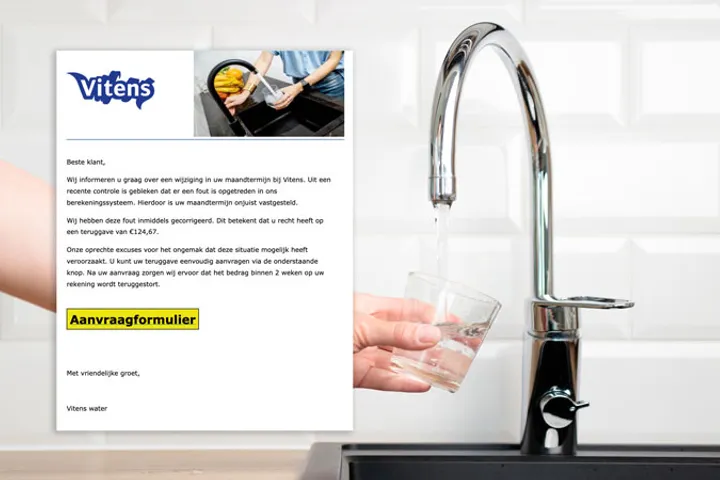 Wees op je hoede voor valse Vitens-mail over teruggave van 207,64 euro