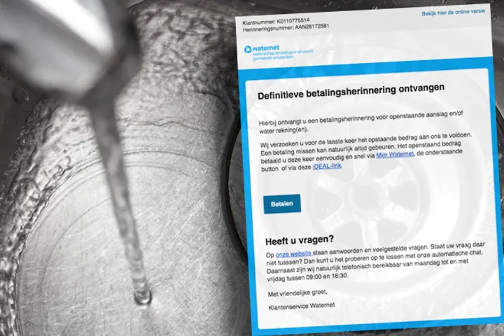 Oplichters sturen spookfacturen namens Waternet: 'Betaal het openstaande bedrag direct!'